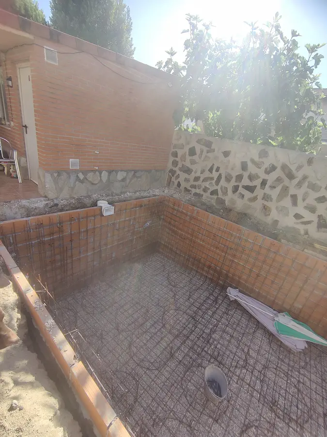 La ejecución del proyecto comenzó con la excavación y preparación del terreno, asegurando una correcta nivelación. Posteriormente se construyó el vaso mediante hormigón proyectado, reforzado con mallazo de acero, una técnica que utilizamos en todas nuestras piscinas de obra por su resistencia, durabilidad y versatilidad de diseño, permitiendo integrar sin juntas elementos como escaleras o islas.